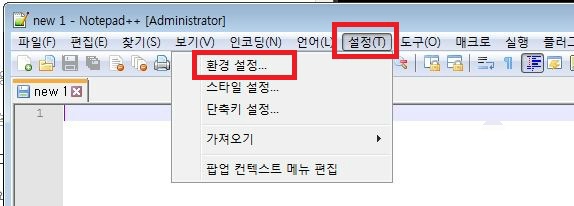 ▼ 상단의 인덱스 메뉴에서 [설정] > [환경설정] 를 선택합니다.
