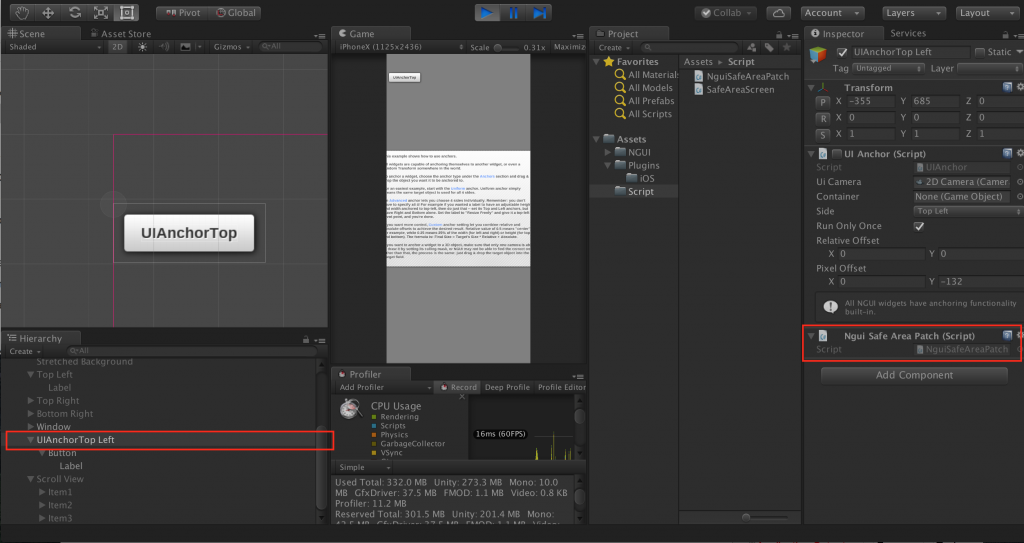 NguiSafeAreaPatch.cs을 UIAnchor에 연결시킨 결과를 기재합니다.