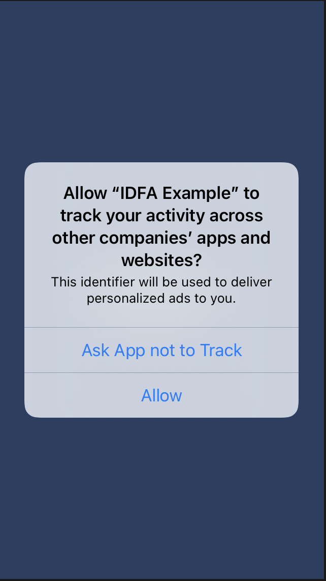 As most SDK recommend We will need to trigger this before we initialize any SDK’s that we wish to pass the IDFA into. We also can only trigger this one pre install with users being able to edit there preference within the IOS Settings menu.Here we are using a really simple system where we trigger the notification when a user press a button.