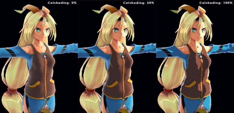 Smoothly control the cel-effect with a slider, ranging from "normal" smooth shading to 100% sharp edges