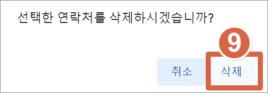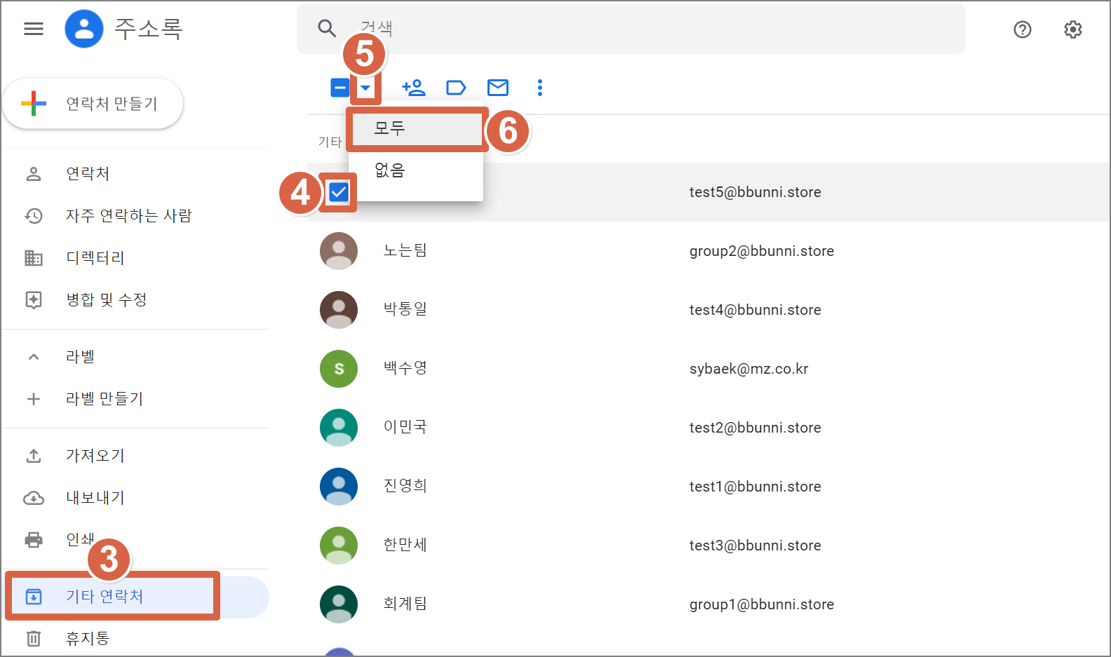 7. 모든 주소록이 선택되면, 상단의 메뉴를 클릭합니다.
