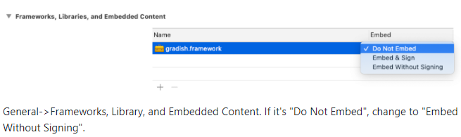 4.2.1) General->Frameworks, Library, and Embedded Content. If it's "Do Not Embed", change to "Embed Without Signing"