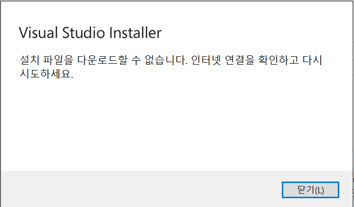2) 웹사이트에서 Visual Studio Installer 파일을 다운받아서 설치하려고 하는데 아래와 같이 에러를 내면서 설치 진행이 안됨.