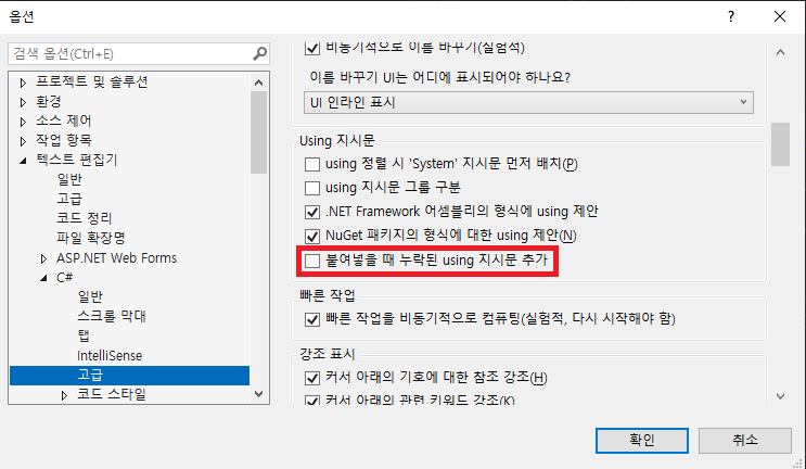 1) Visual Studio - 도구 - 옵션 - 텍스트 편집기 - C# - 고급 - Using 지시문 - '붙여넣을 때 누락된 using 지시문 추가' 끄기