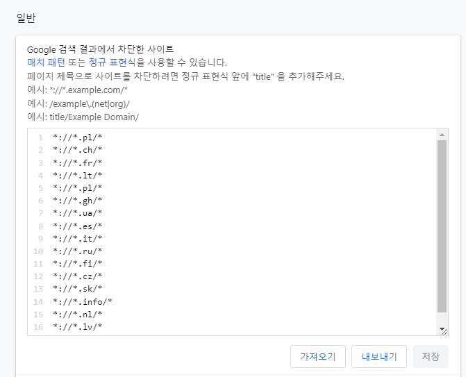 - Google 검색 결과에 나타나는 특정 사이트들을 차단합니다