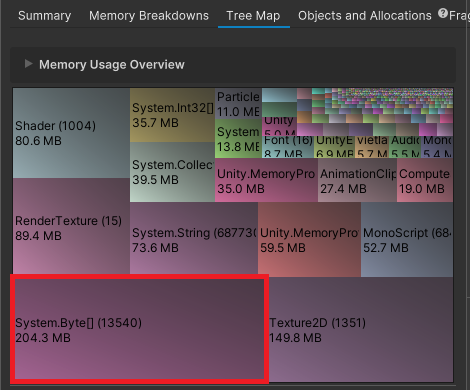 Unity Editor에서 Memory Profiler를 보다보니 아래와 같이 System.Byte[] 라는게 있는데 204MB라니..