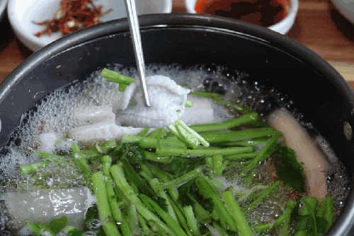 익힌 미나리와 함께 집어서 고추냉이 간장에 살짝만 찍어 드시면 천상의 맛!! 사천상견례 장소로 왜 인기가 있나했는데.. 복어요리는 중간중간 재미있는 이야기가 많네요. 국물도 있고 단백하고... 갈수록 국물은 점점 맛있어진답니다 ㅎㅎ 복국이 진국되는 순간!!