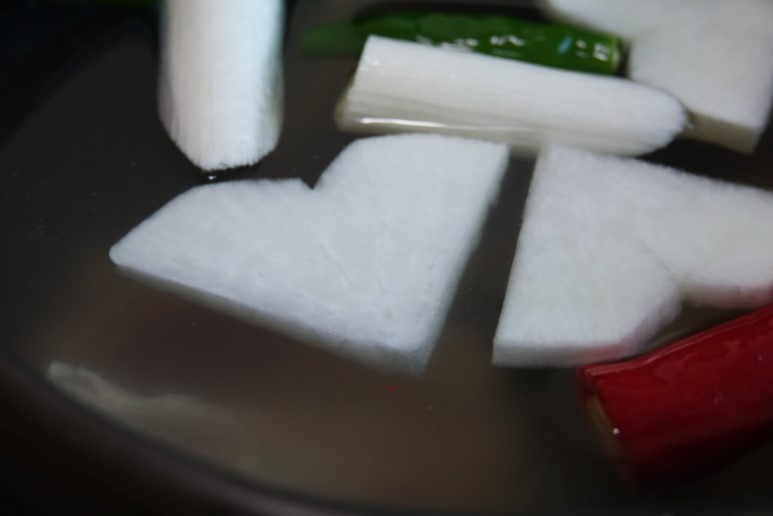 셔브샤브를 위한 복어머리를 넣은 육수가 먼저 나오는데요..무우가 하트모양~♥ 이렇게 하트를 폭폭폭 삶아서 맛있는 국물을 만들어 줍니다