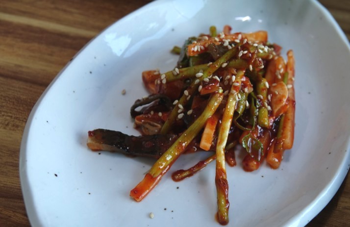 이제막 바로 잡은 생복어(졸복) 껍질을 살짝데쳐 가벼운 양념을입힌 복어껍질 요리 ~ 요고요고 완전 별미랍니다 ㅎㅎ