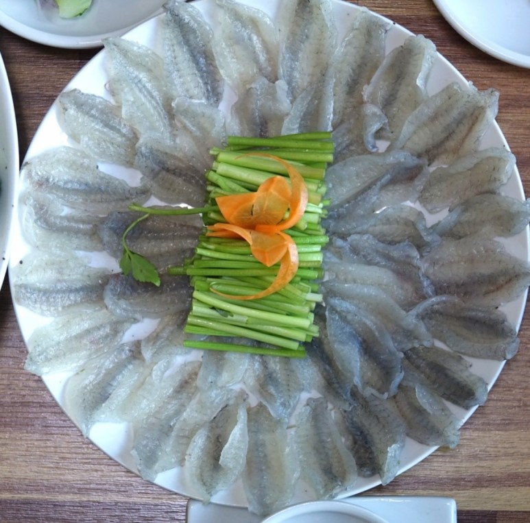 졸복을 아시죠~~ 졸복은 크기가 6~7cm 정도의 봤지만 이렇게작은 복어를 말합니다. 전 졸복으로 끓인 복국은 자주 먹어 봤지만 이렇게직접 살아있는 졸복을그자리에서 장만해서복어회를먹어보고 나머지는 샤브 (실제 샤브용이라 조금 두껍지만금방한거라복어회로 먹어봄) 로 즐겼어요