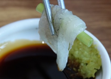 고기 한점이 졸복 한 마리 인 셈입니다. 대략 50마리가 ...ㅎㅎ 회감이 아니라 샤브용이라 약간 두껍게 뜨신것 이라하십니다투명해서 아래쪽이 다보이고 살도 완전 탄력이 있습니다