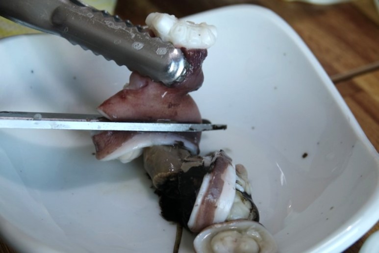 사장님께서 자연산 가리비와 낙지 한마리도 주셨네요. 복샤브를 먹고 난 후에 먹을거예요 우아아아아~~얘가 너무 움직입니다 사천복요리 전문요리사, 쉐프문경희님께서 직접 잘라주시면서 복어이야기도해주십니다