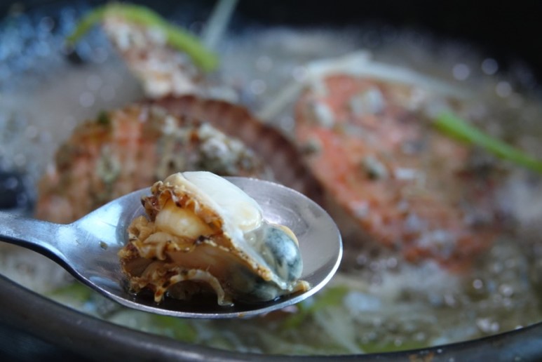 이렇게 가열차게 복샤브를 먹고 이마에 땀이 송글송글 ㅎㅎ 이제 부터 국물을 막~~ 먹어 줍니다. 이제 자연산가리비를 넣어서 입벌리 기만을 기다립니다. 점점 국물은 퐌타지!! 국물에 위로 받았어여~~ ♥ 단백한 복어살은 행복이예요~~♥ 이래서 돈벌어 맛있는거 먹잖아요 ㅎㅎ (보통은 이 국물에 죽을 해드시는데 저희는 너무 잘먹어...요기까지만요 .. 이것만 해도 행복감 만땅 ㅎㅎ)