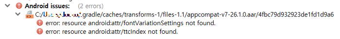 error: resource android:attr/fontVariationSettings not found.