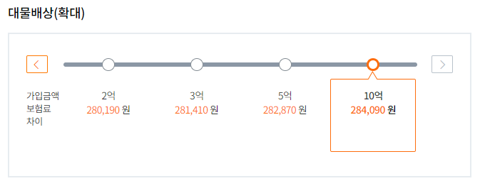 하지만 대물 1억과 10억의 보험료 차이는 보통 1만원 정도 밖에 차이가 안나니, 꼭 10억으로 가져가세요.