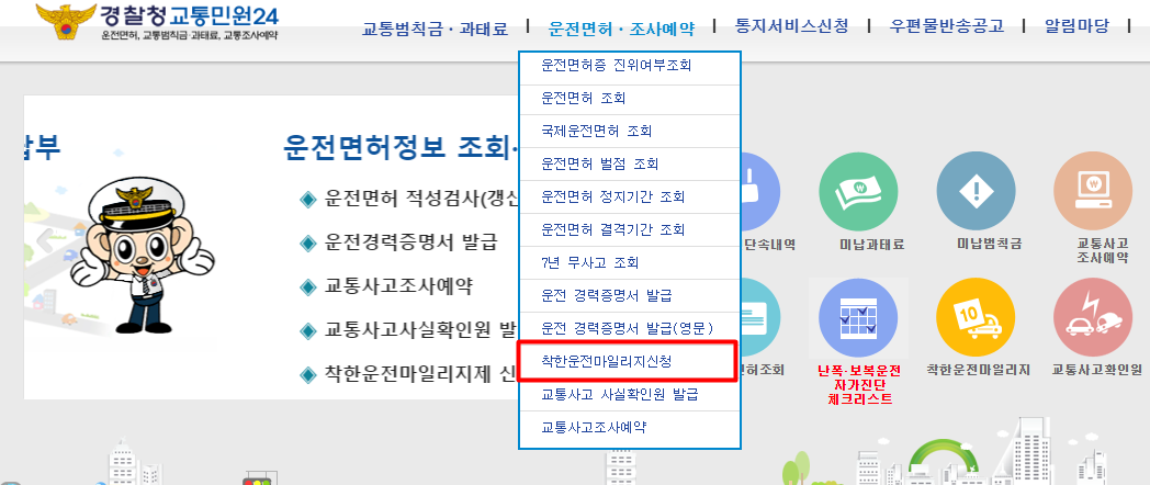 바로 경찰청에서 등록하는 “착한운전 마일리지”입니다.