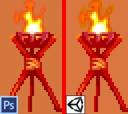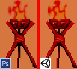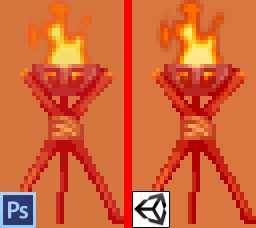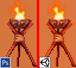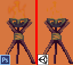 You can see discrepancies between the Photoshop and the Unity version in the alpha blending, especially at the edges.