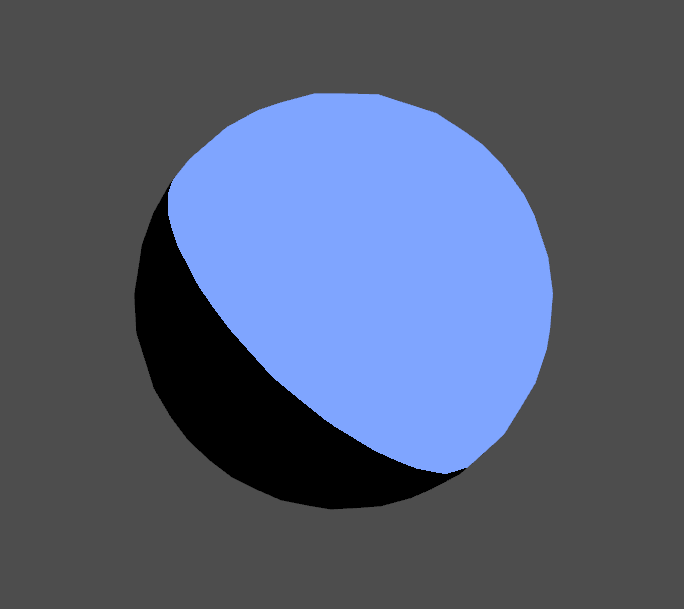 This looks good, but the dark side istoodark; right now it is completely black. Also, the edge between dark and light looks a bit sharp, but we'll deal with that later. For now, we will addambient light.