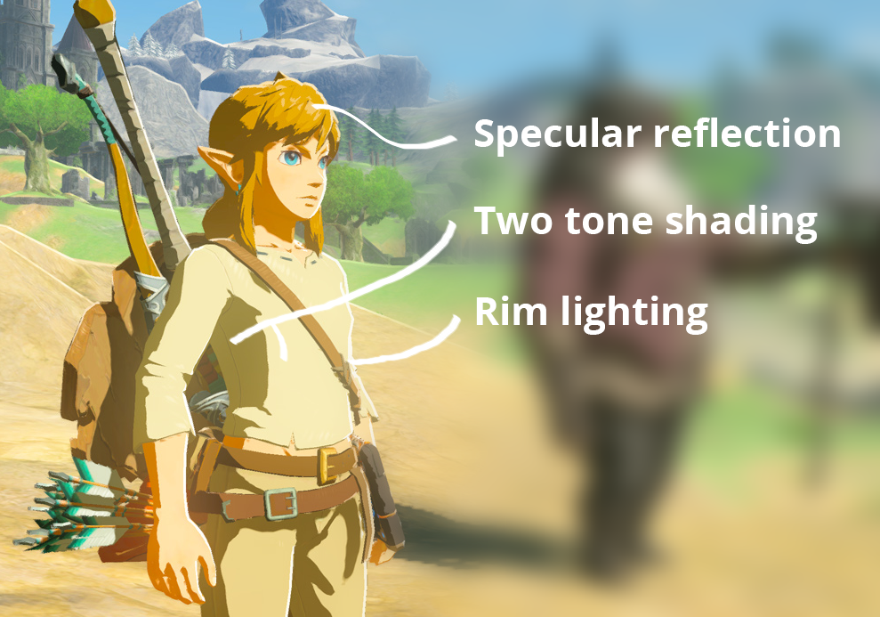 This tutorial will describe step-by-step how to write a toon shader in Unity. The shader will receive light from asingle directional source, and havespecular reflectionsandrim lighting. We will use the art style ofThe Legend of Zelda: Breath of the Wildas our reference, although we will not implement some of the more complex rendering techniques used in the game.