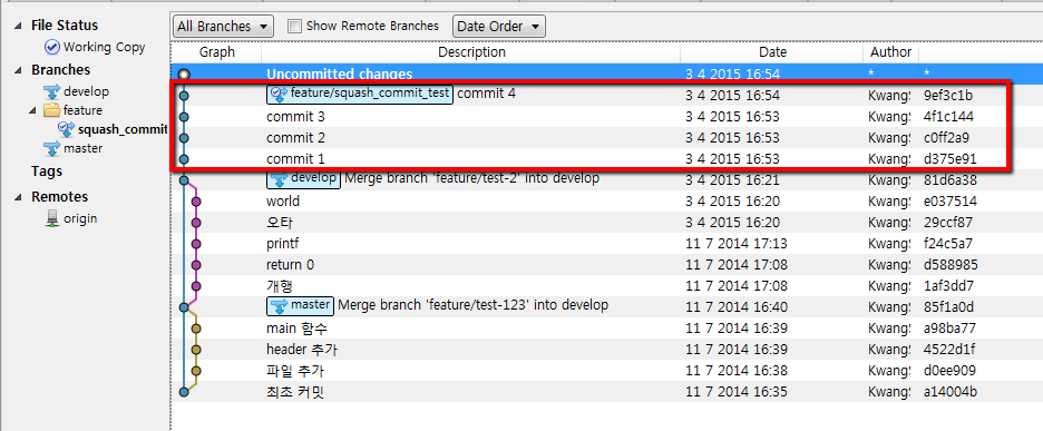 | [펌] 소스트리에서 git squash commit 을 이용하여 여러 개의 커밋을 합치고 정리하기 (0) | 2019.11.06 |