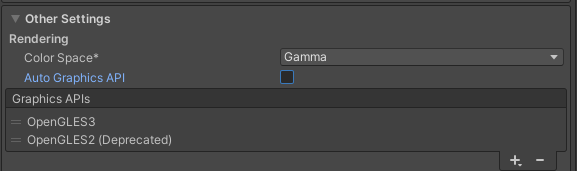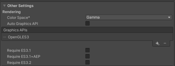 [참조] https://forum.unity.com/threads/is-opengl-es-2-is-still-needed-in-unity-for-android.976809/