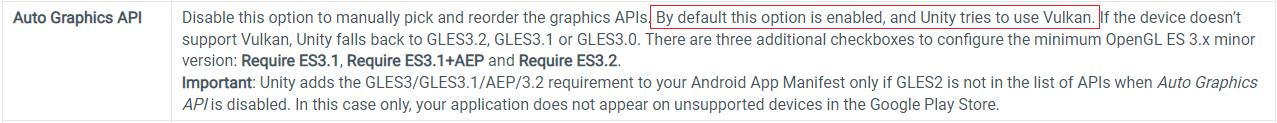 1. Unity에서 Vulkan 사용 시, 중국 폰에서 크래시가 꽤 많이 나온다고 한다.