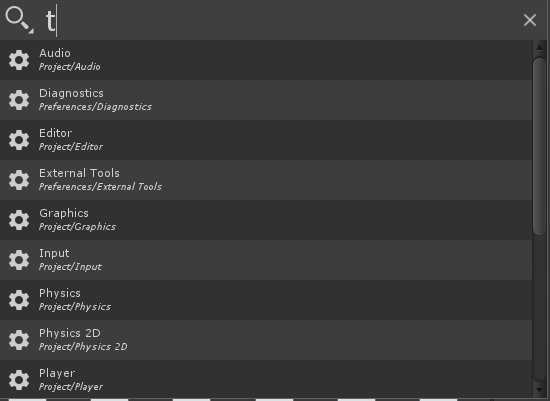 Each Project Settings or Preferences pages is available for search. The Quick Search Tool will open the Unified Settings Window at the required pages.