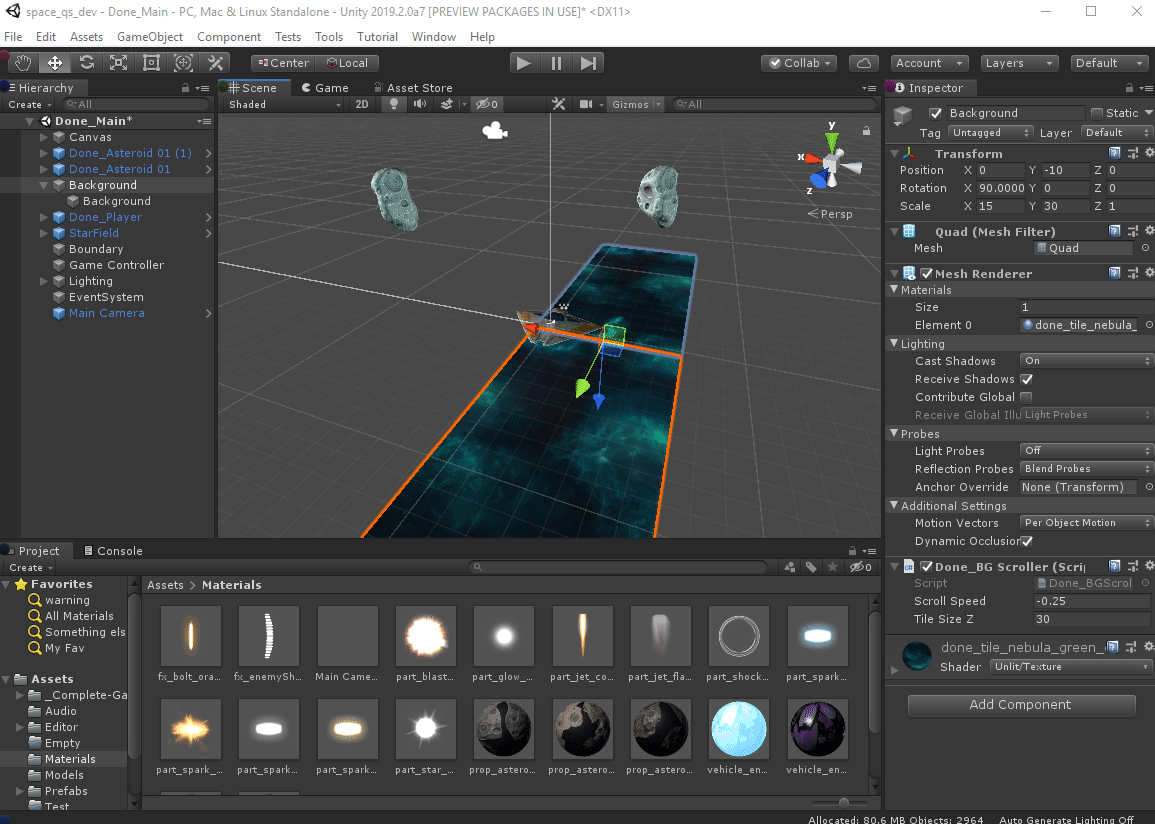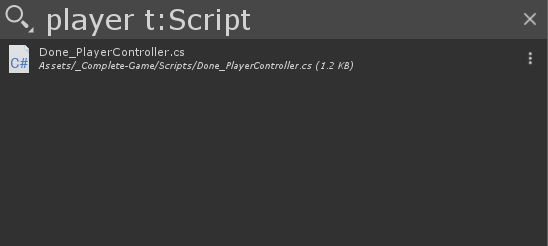 All GameObjects in the current scene are available for search. Activating a scene item in the Quick Search tool will select the corresponding GameObject in the Scene.